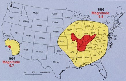Citation Linkupload.wikimedia.orgDamage-range comparison between a moderate New Madrid zone earthquake (1895, magnitude 6.8), and a similar Los Angeles event (1994, magnitude 6.7).